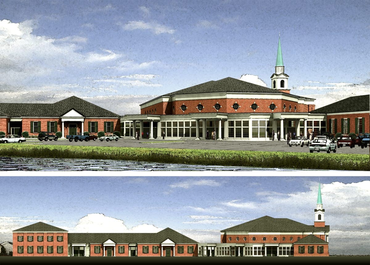 The greatest challenge of Colonial Baptist Church was meeting its rapidly expanding ministries. The church has outgrown its original sanctuary as well as the secondary sanctuary on the same site. Barnes Design Group was commissioned to design a 25,000 square foot Christian education facility coupled with a multi-purpose/chapel for the next phase of construction. We also incorporated into the total master plan a 1,500-seat sanctuary that would accommodate their growing ministries and blend into the new architecture established by the Christian education facility. The entire campus plan was designed in keeping with many of the colonial forms of architecture utilized in a more contemporary fashion.