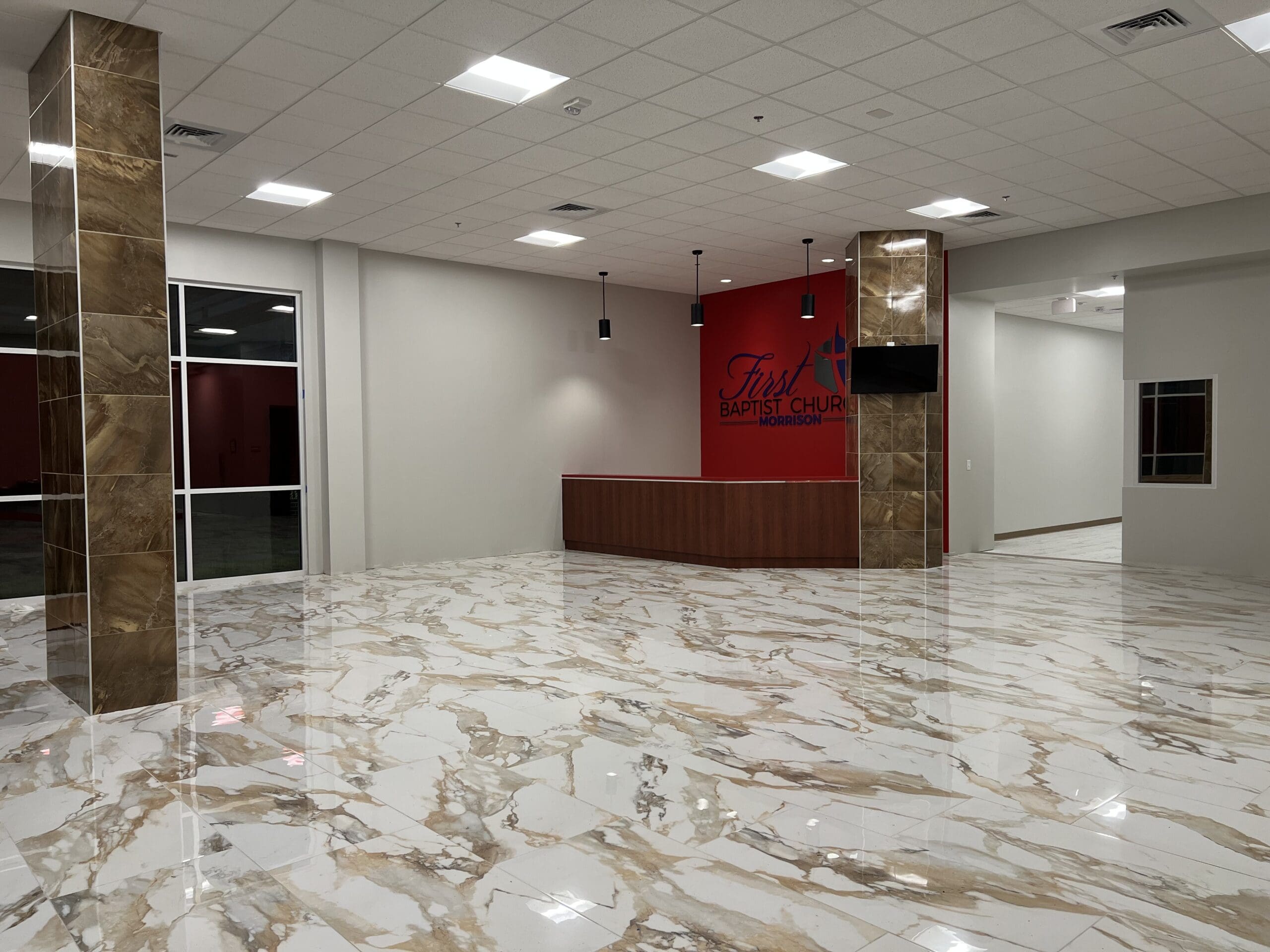FIRST BAPTIST CHURCH MORRISON – This project involved the construction of a new 514-seat sanctuary as a major addition to the church’s original facility. Designed to complement and enhance the existing structure, the addition significantly expands the church’s worship capacity while introducing a refreshed architectural identity.