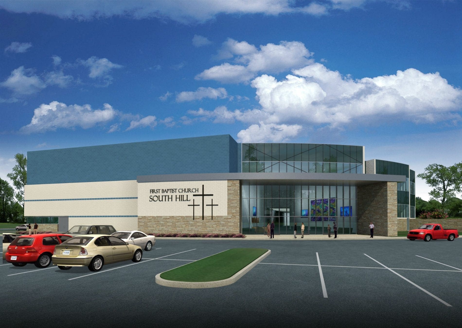 First Baptist Church South Hill is an exciting church located in Chesapeake, VA. Pastor Michael Toliver worked very closely with Barnes Design Group in order to lay out a fifteen-year growth plan that would maximize their ministry in the years to come. It included updating the entire existing structure with an exciting “curb-appeal” design, as well as provided approximately 80,000 square feet of new space, including social halls, children’s ministry, youth ministry, new administrative spaces, classrooms and a multitude of other functions.