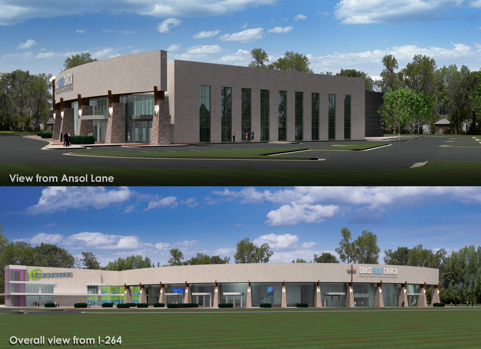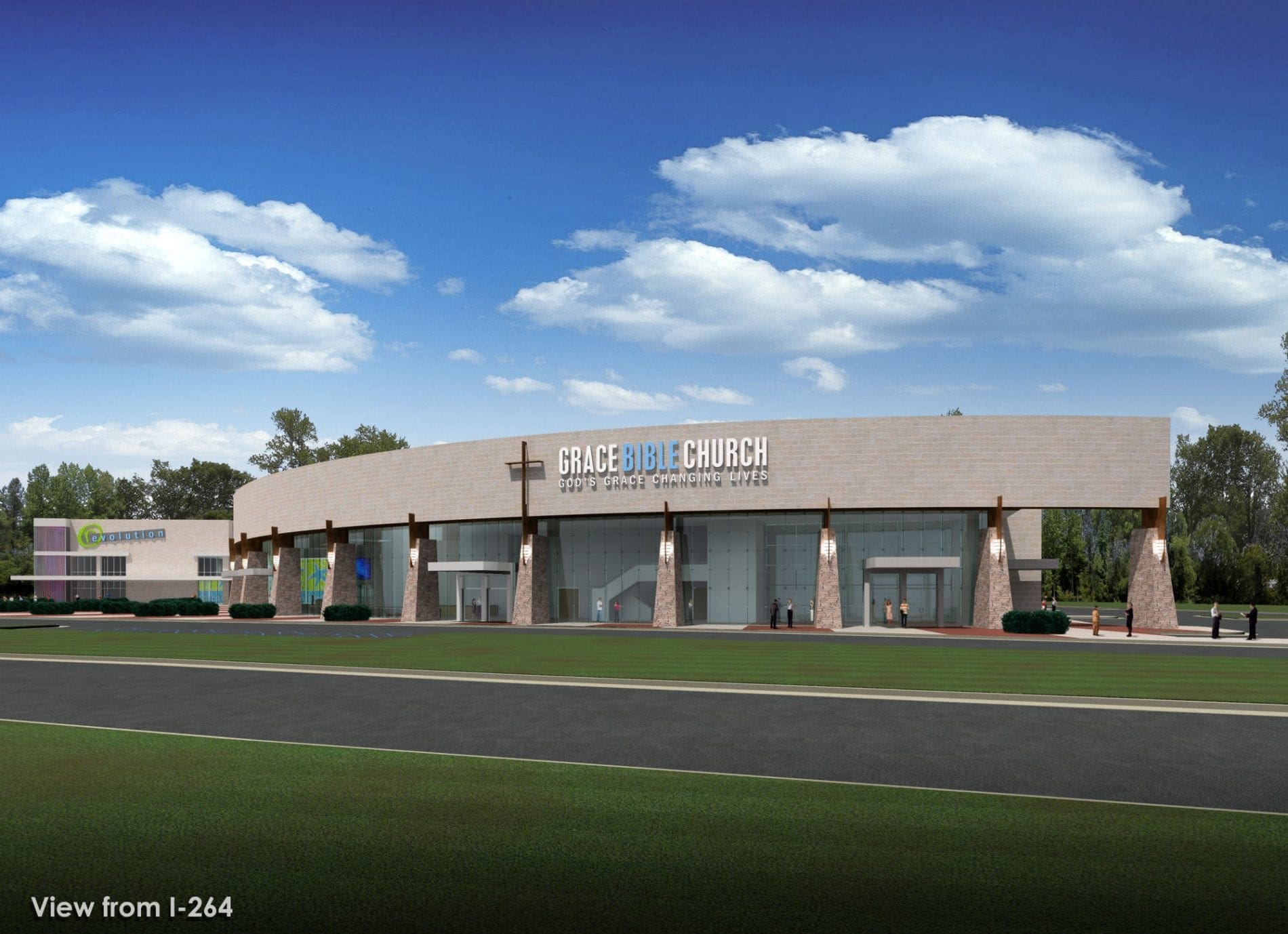 Grace Bible Church purchased 30 acres of prime real estate adjacent to the entry highway into the ocean-front of Virginia Beach. The overall design was to embrace a striking and inviting architecture that would utilize glass, along the highway, to communicate a transparency of the ideology of the church. This provides a first time attendee the opportunity to look into the structure seeing the activity of the church prior to entering. The master planning included a youth facility as well as a large lobby entry space, Christian education and a 1500-seat sanctuary.