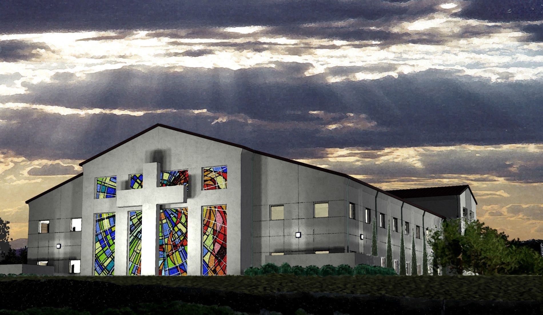 Martinsville Church of God commissioned Barnes Design Group to design a large structure which would incorporate the entire ministry of their relocated church. The church purchased approximately 20-acres on the top of a mountain and had a desire to build 60,000 square foot facility which would incorporate a 600 seat sanctuary, classrooms, youth spaces, administrative spaces and social spaces within the entire structure. Barnes Design Group utilized a pre-engineered metal building as the sub-structure, utilizing stucco and specialty light treatments to create a very contemporary and striking design.