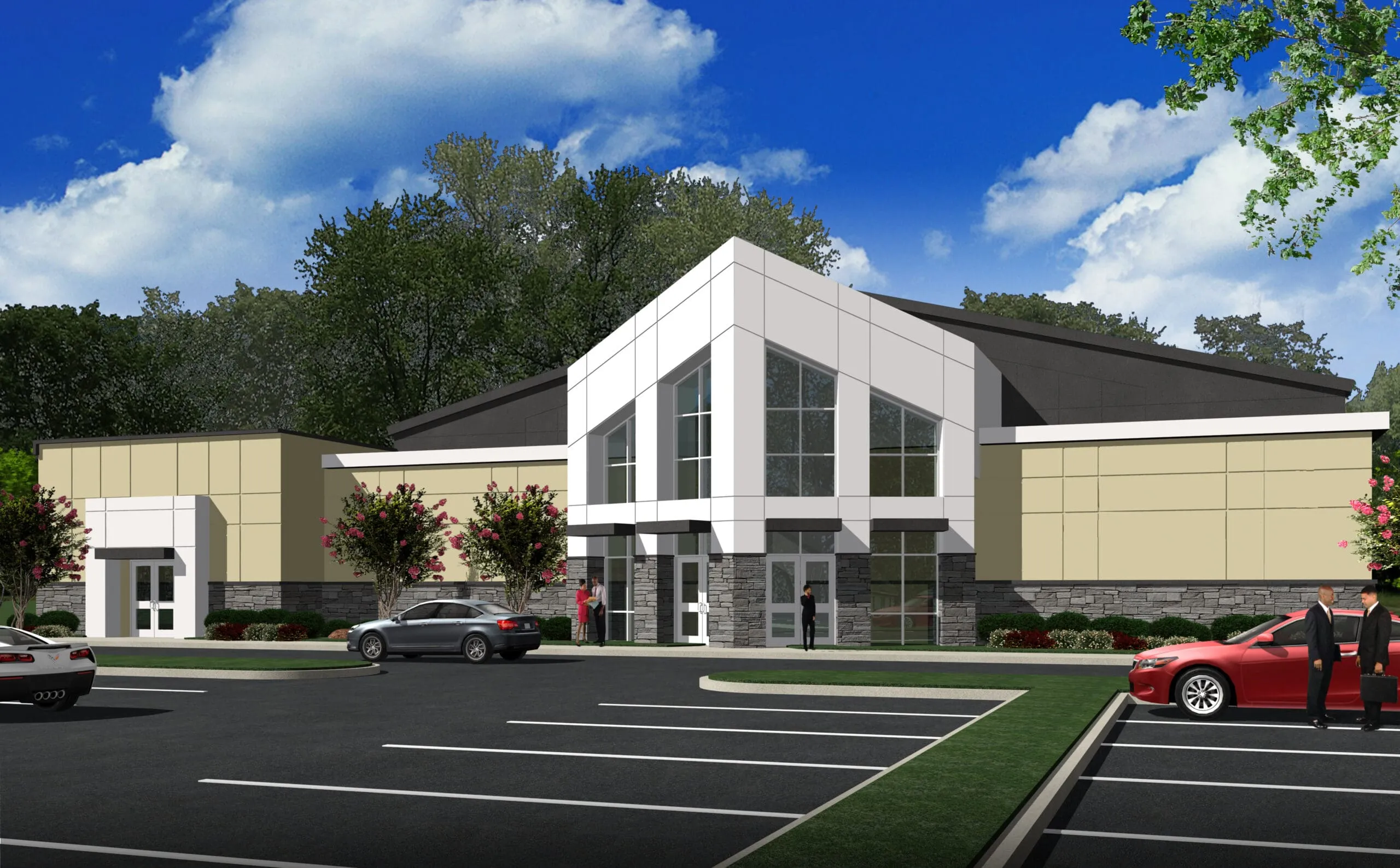 NEW LIFE WORSHIP CENTER - This project features a 1,500 sq. ft. addition to an existing EIFS and metal wall panel church, thoughtfully designed to enhance both the functionality and visual identity of the facility. The new addition includes a lobby and classroom spaces, constructed using a combination of EIFS and stone veneer for a modern yet complementary expression.